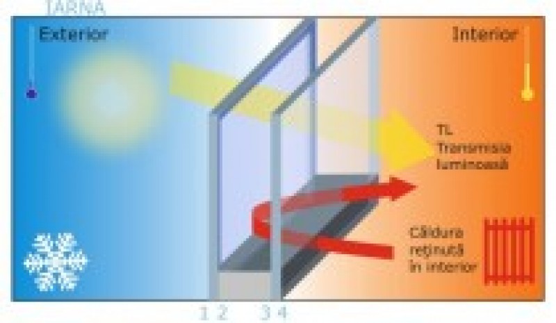 Sticla cu emisivitate redusă. Este o sticla clara, transparent pe care se aplica o pelicula de grosime microscopica dintr-un oxid de metal. Aceasta permite trecerea luminii, dar blocheaza evacuarea caldurii prin sticla, reducand astfel pierderea de caldura.